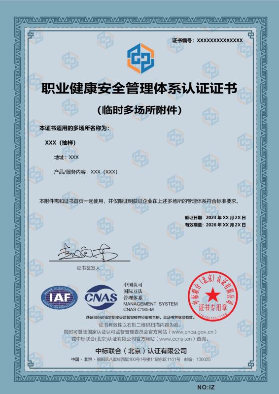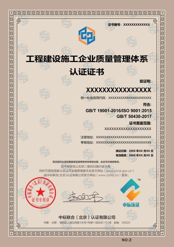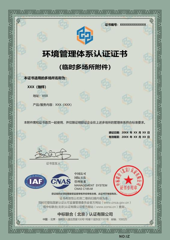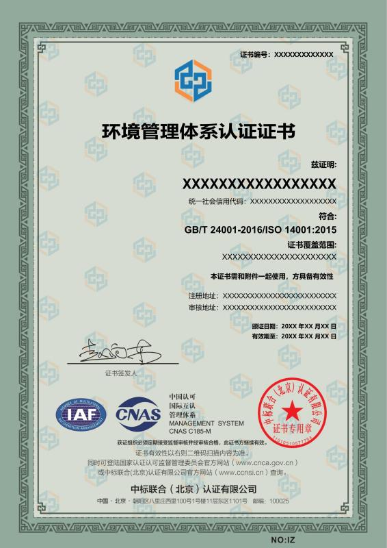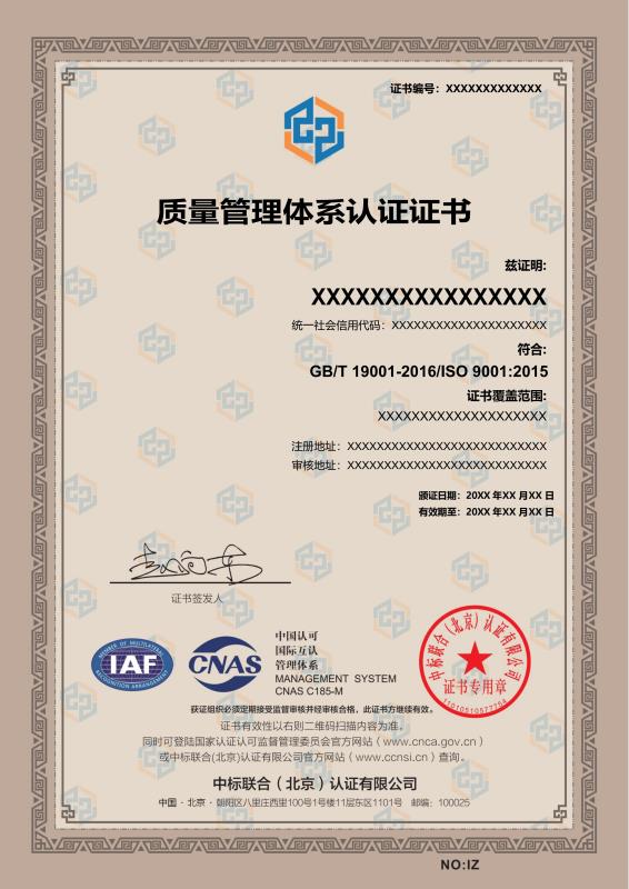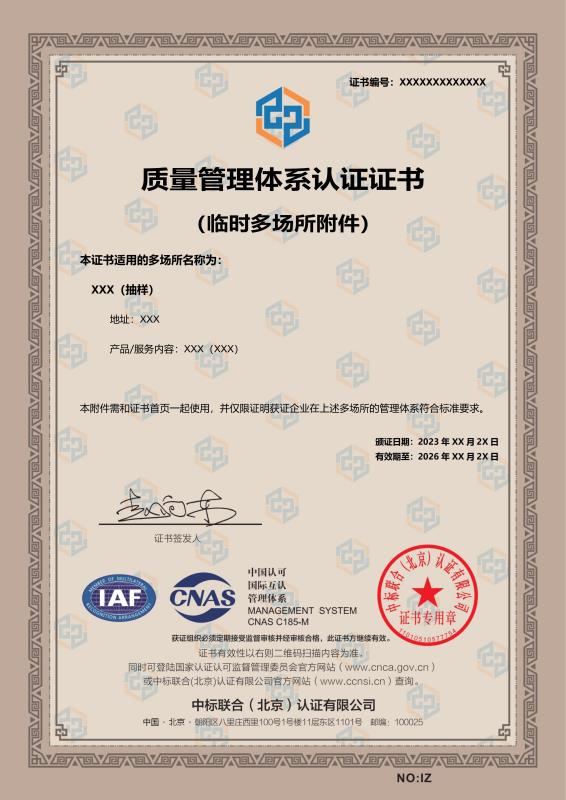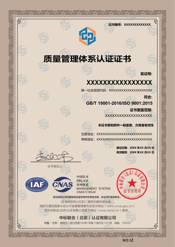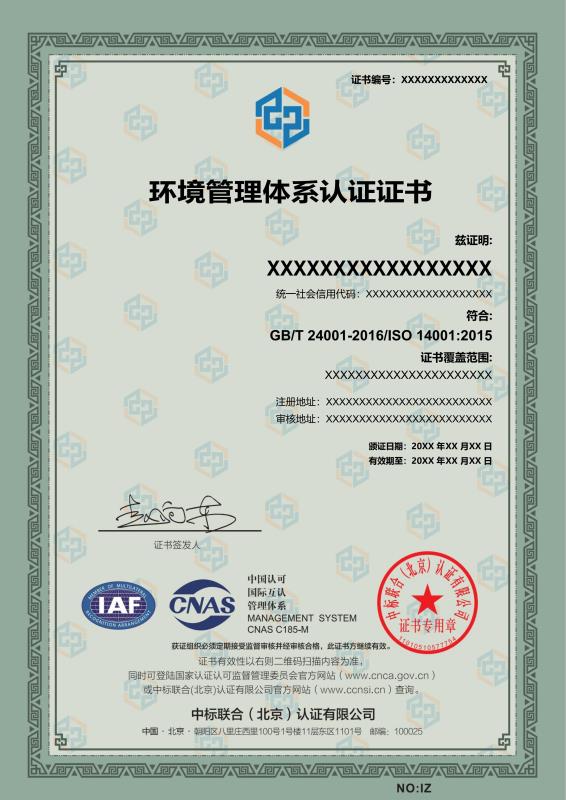 管理體系證書樣本展示