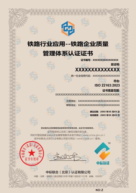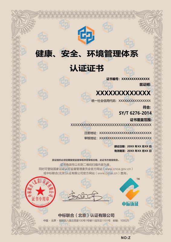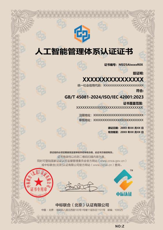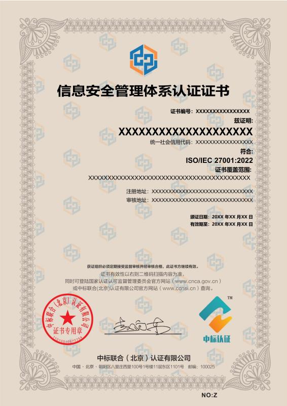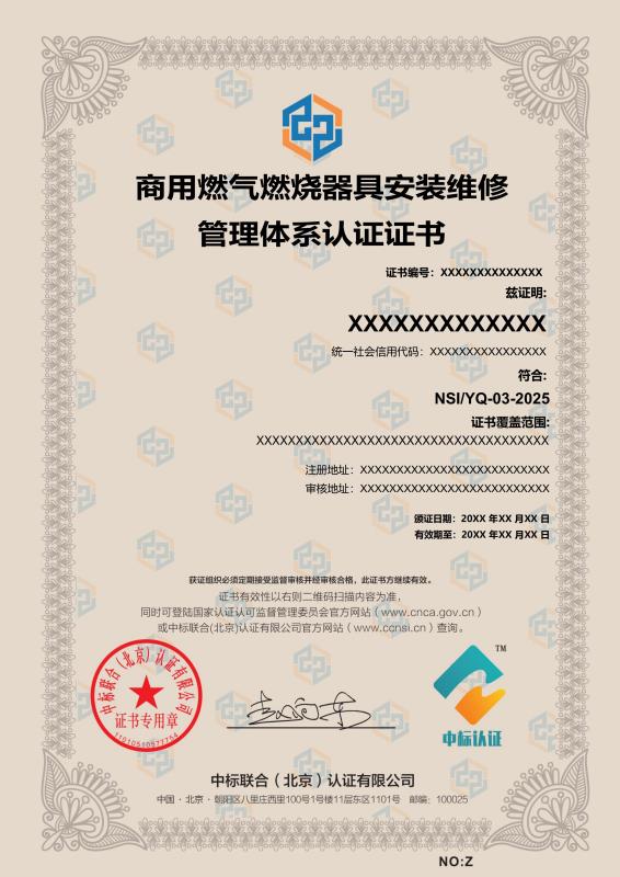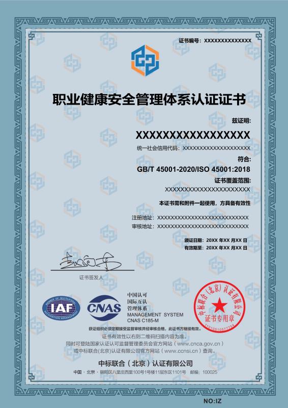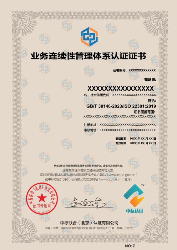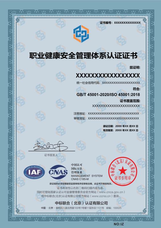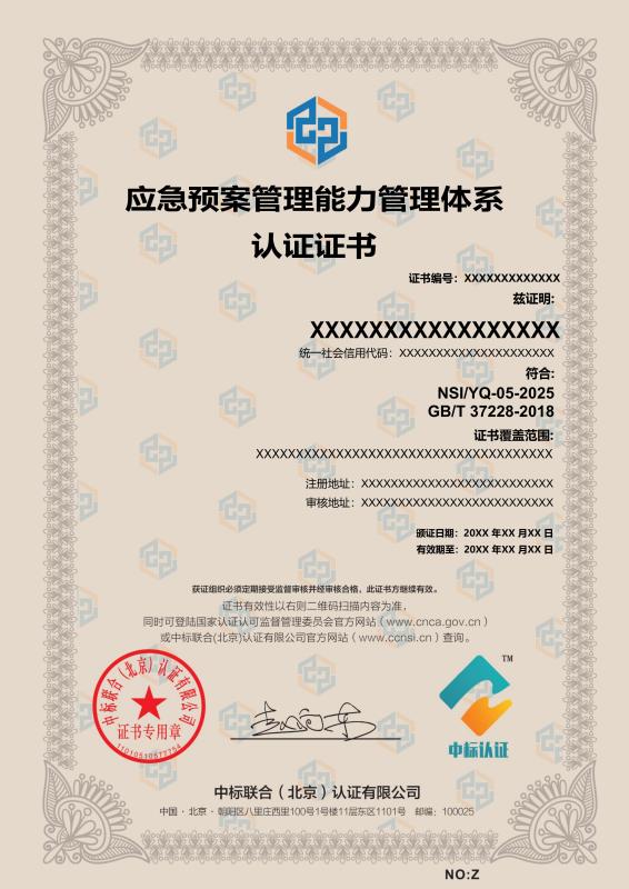 管理體系證書樣本展示